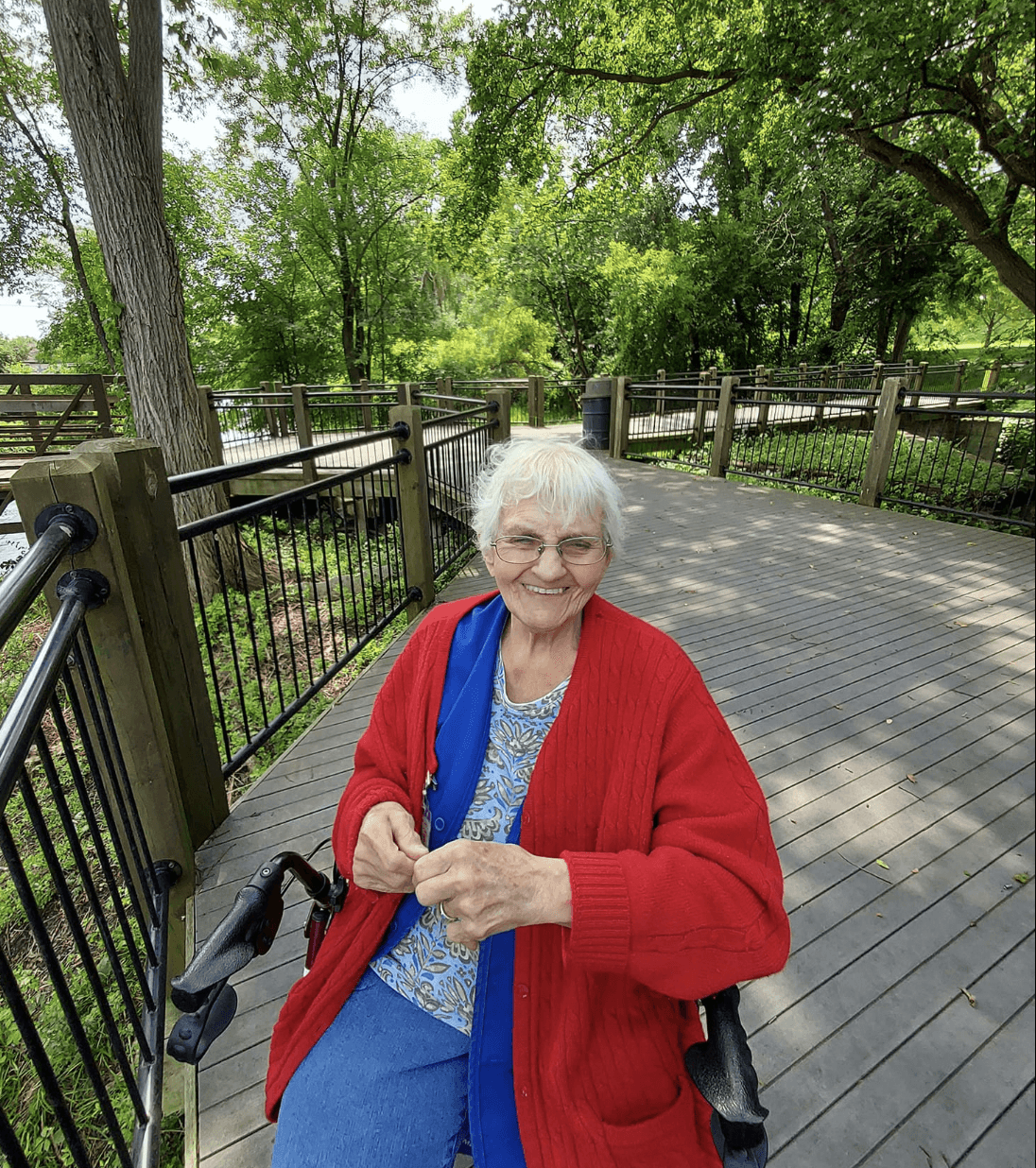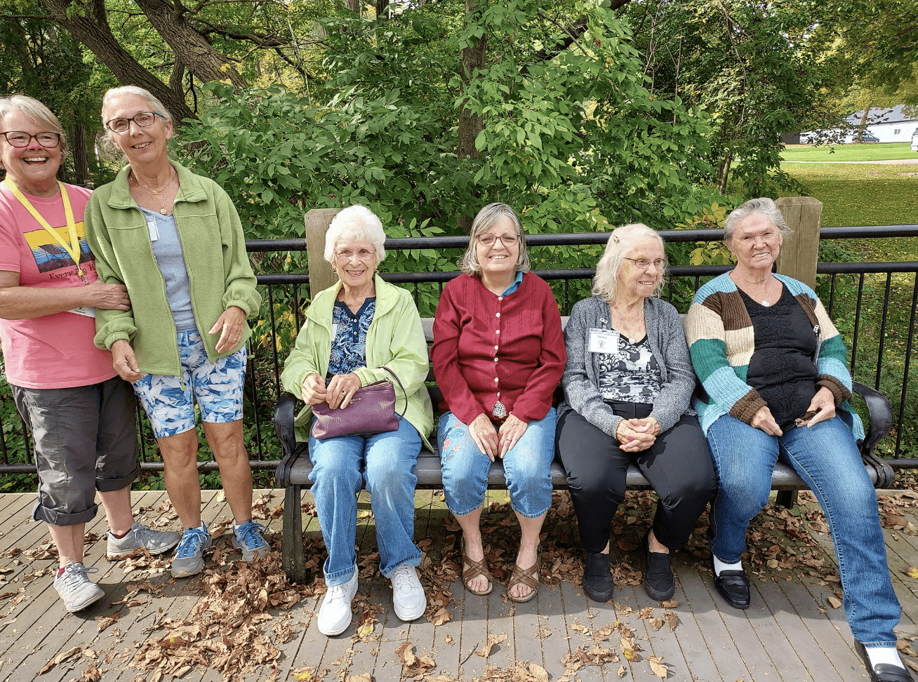 Staff and volunteers accompany our members throughout the walk. The trail offers a great place to get some exercise, with benches to stop and rest along the way.