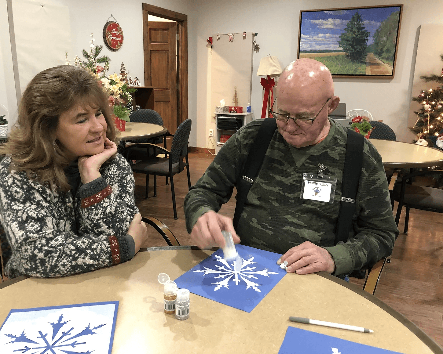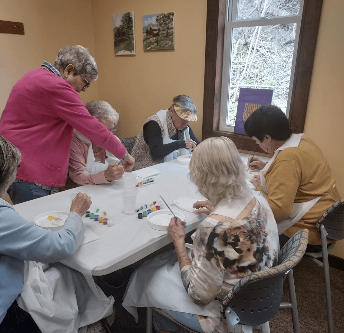 Our Life Enrichment Coordinator is always looking for new and creative ideas for arts, crafts and other projects for our members. She has many years of experience working with older adults and an abundance of patience. Our team has a knack for discovering what each member enjoys. It may be painting a bird house, putting a puzzle together, decorating a cake, doing a group crossword puzzle or sipping coffee and chatting, Carmen will make it happen.